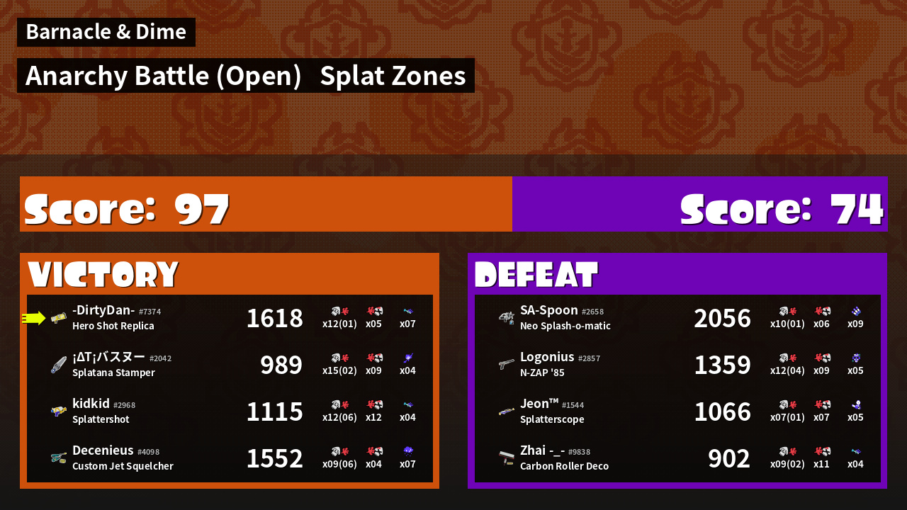 | Mode | Splat Zones - Anarchy Battle (Open) | ||