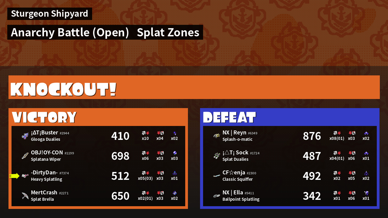 | Mode | Splat Zones - Anarchy Battle (Open) | ||