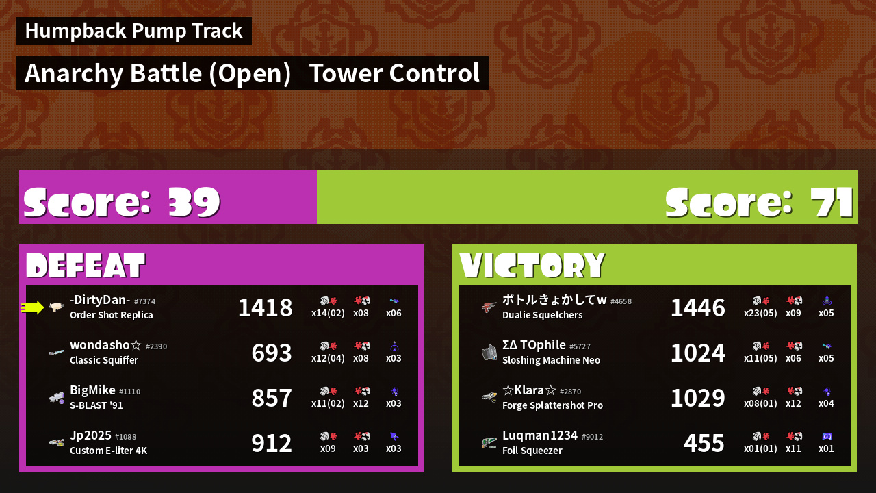 | Mode | Tower Control - Anarchy Battle (Open) | ||