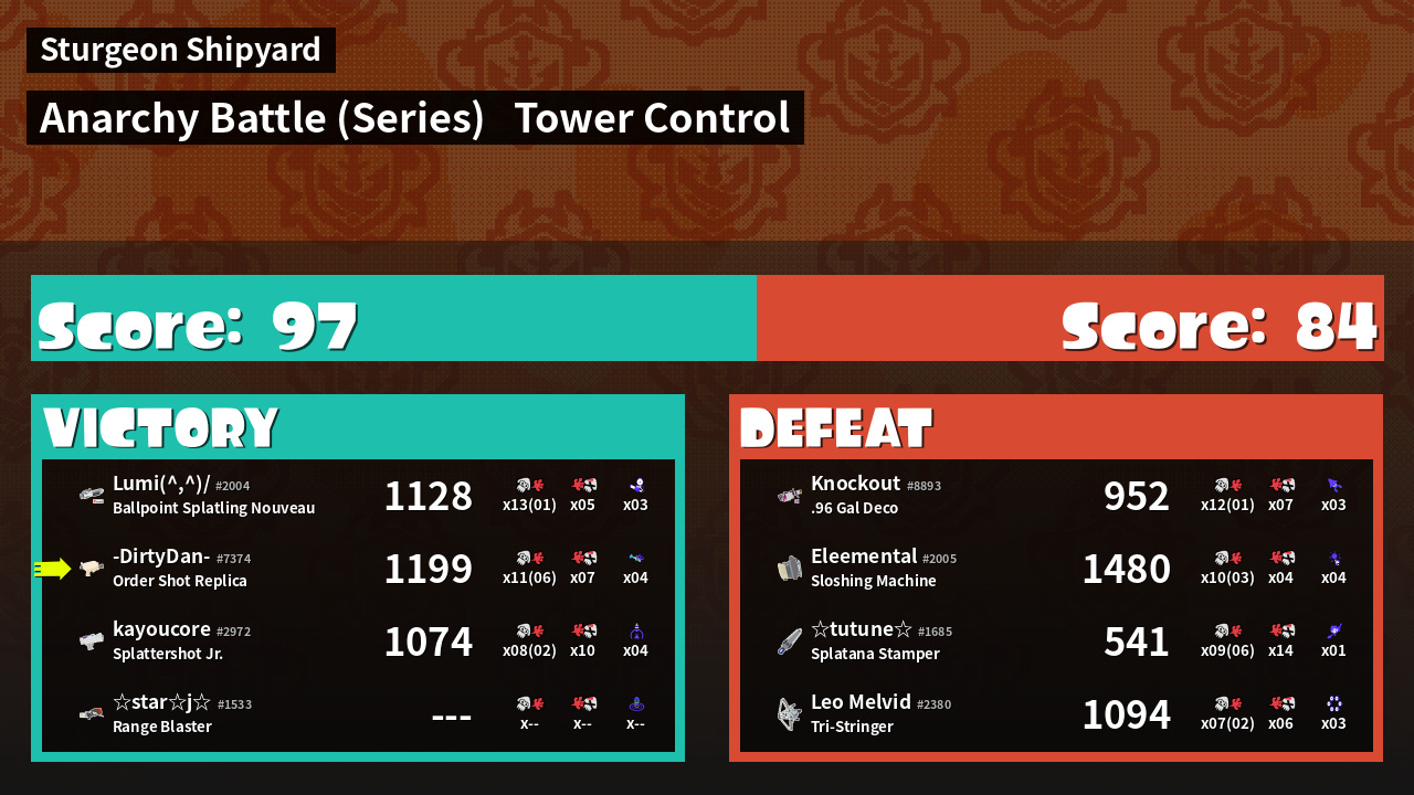 | Medals | #1 Turf Inker #1 Splat Assister #1 Checkpoint Breaker | ||