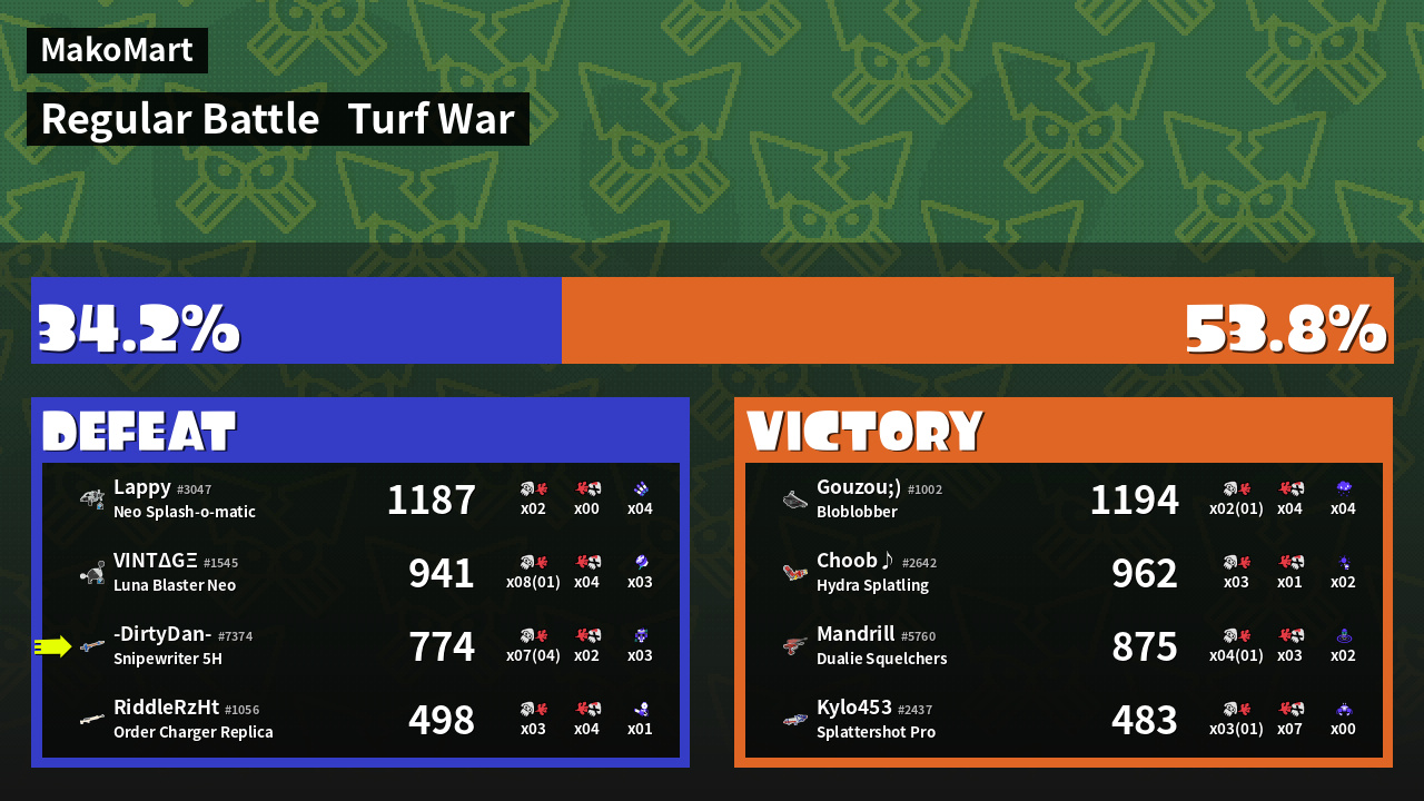 | Mode | Turf War - Regular Battle | ||