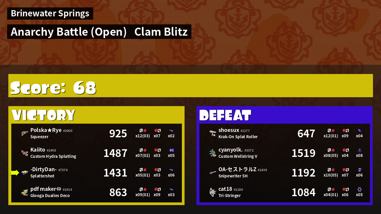 | Mode | Clam Blitz - Anarchy Battle (Open) | ||
