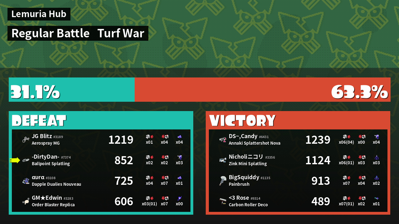 | Mode | Turf War - Regular Battle | ||