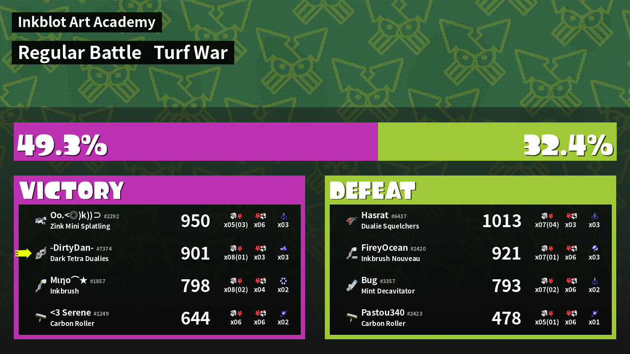 | Mode | Turf War - Regular Battle | ||