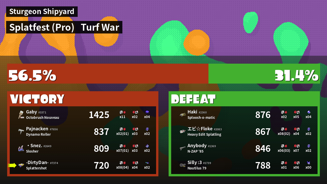 | Mode | Turf War - Splatfest (Pro) | ||