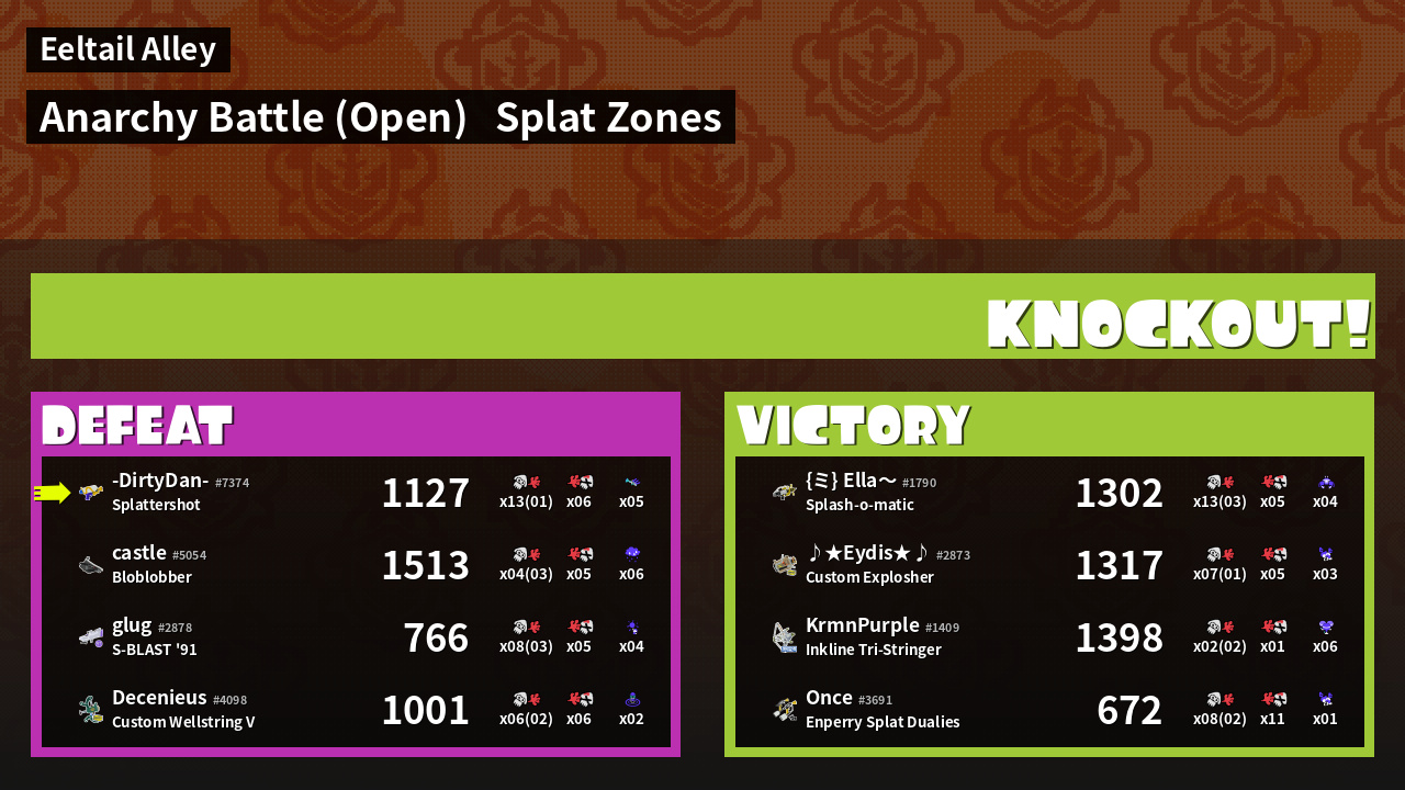 | Mode | Splat Zones - Anarchy Battle (Open) | ||