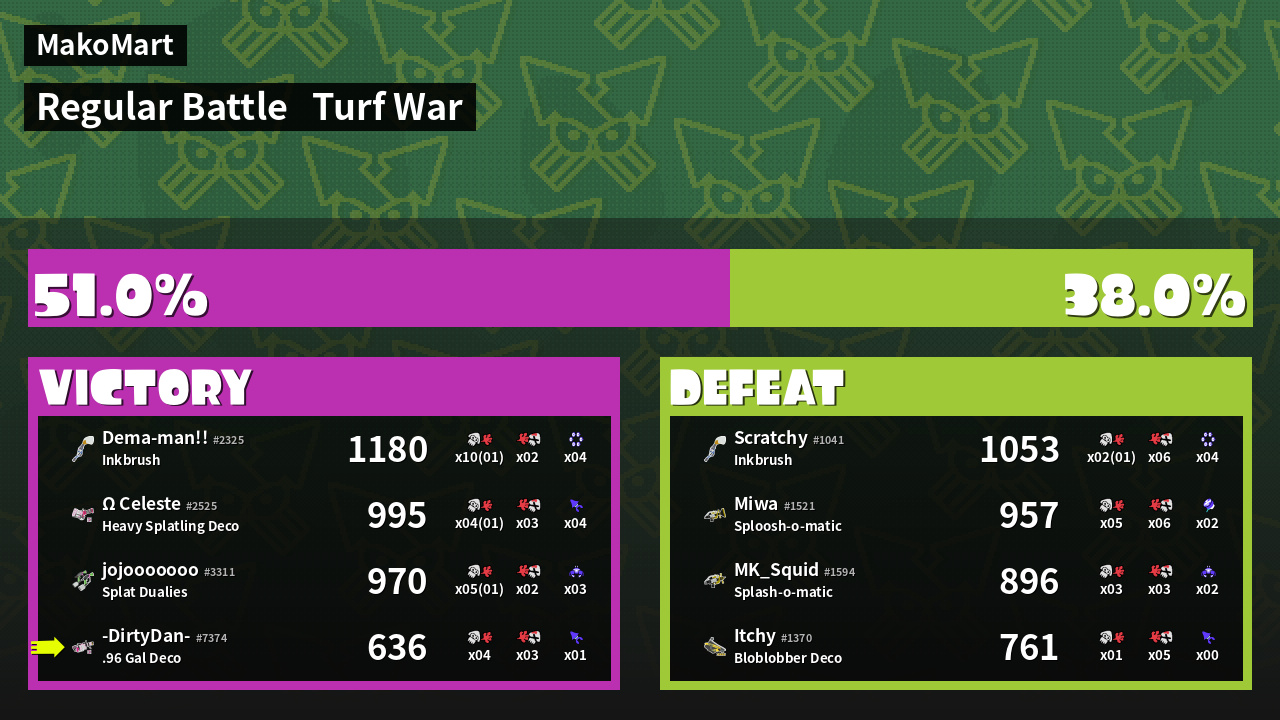 | Weapon | .96 Gal Deco ( Splash Wall / Kraken Royale) | ||