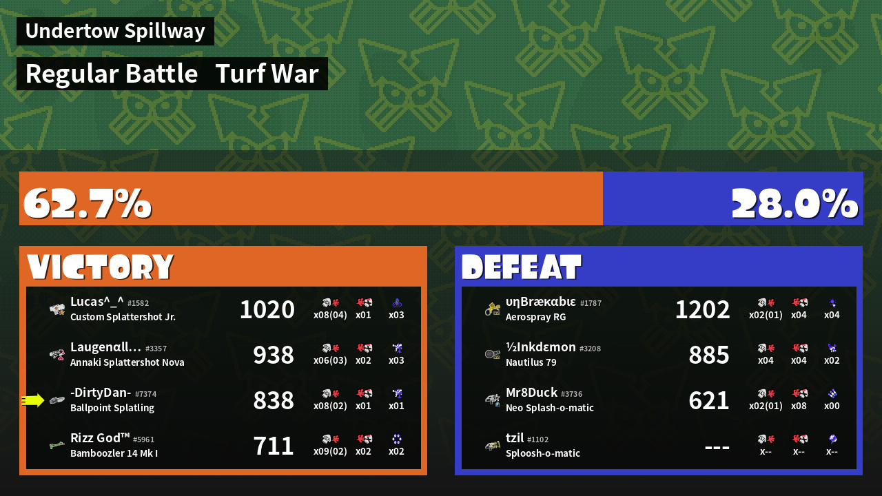 | Mode | Turf War - Regular Battle | ||