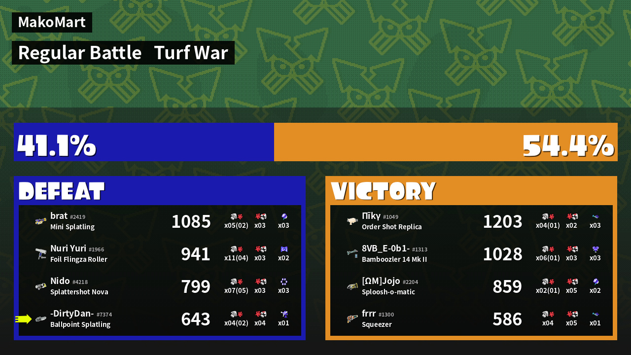 | Mode | Turf War - Regular Battle | ||