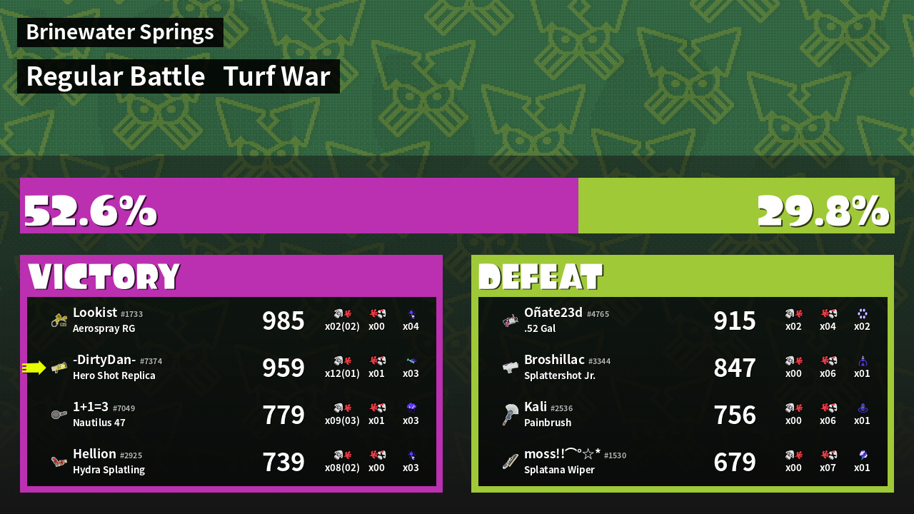 | Medals | #1 Overall Splatter #1 Popular Target #1 Home-Base Inker | ||