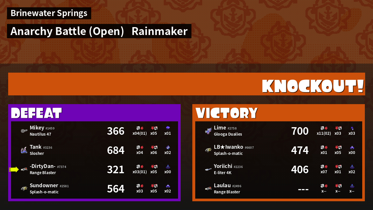 | Mode | Rainmaker - Anarchy Battle (Open) | ||
