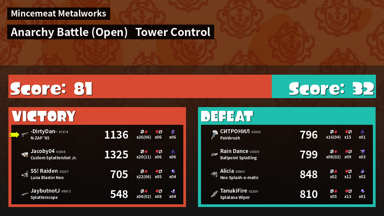 | Mode | Tower Control - Anarchy Battle (Open) | ||
