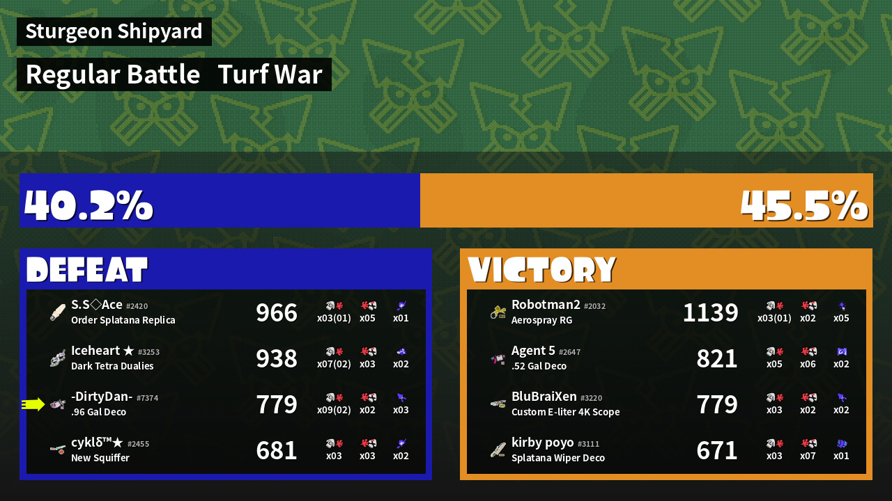 | Mode | Turf War - Regular Battle | ||