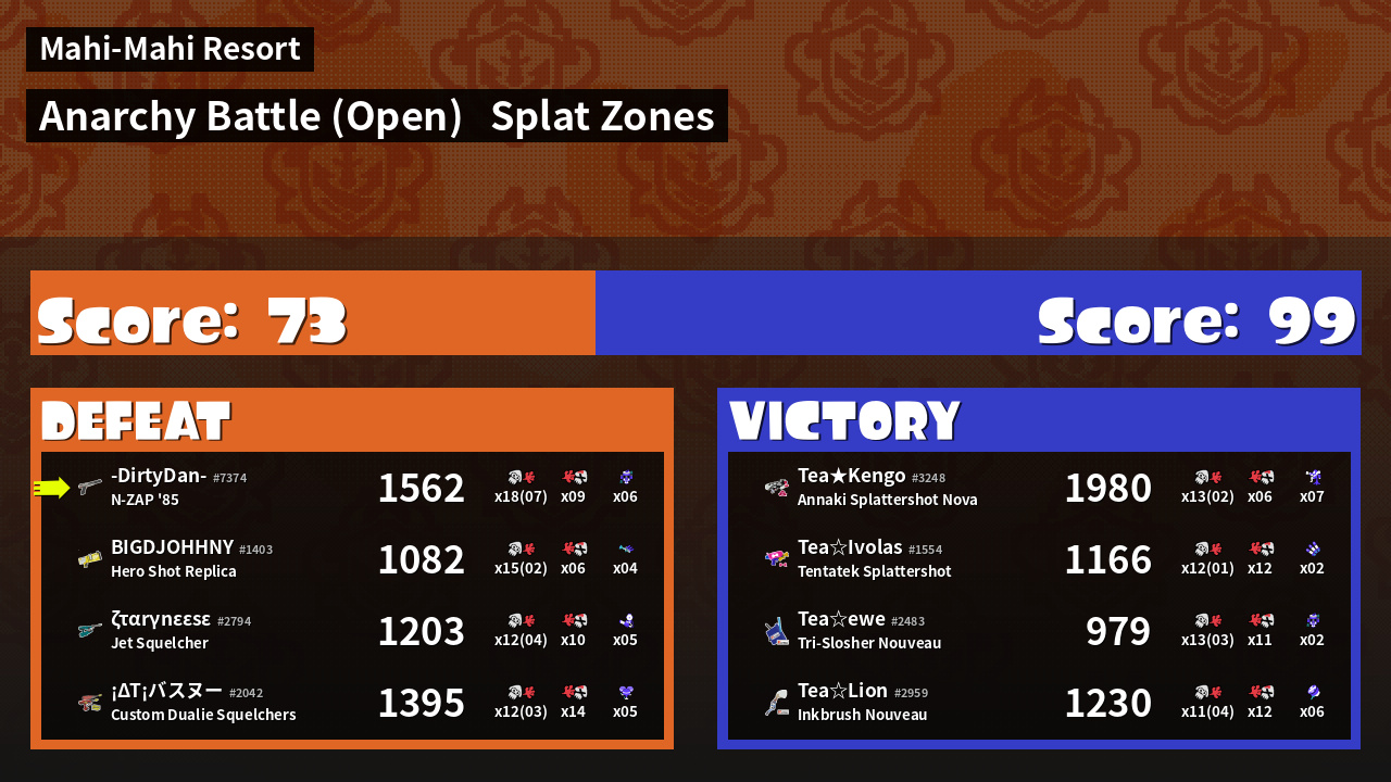 | Mode | Splat Zones - Anarchy Battle (Open) | ||