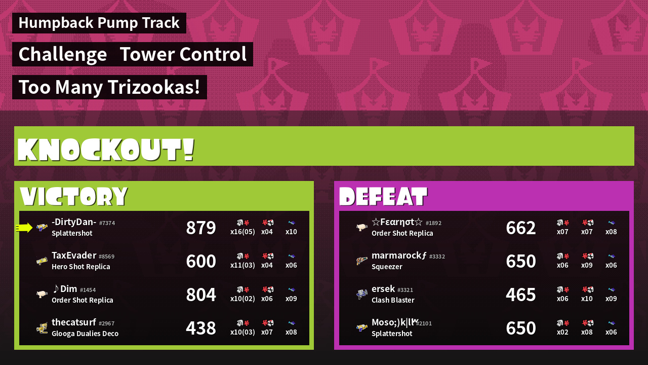 | Medals | #1 Overall Splatter #1 Turf Inker #1 Enemy Splatter | ||