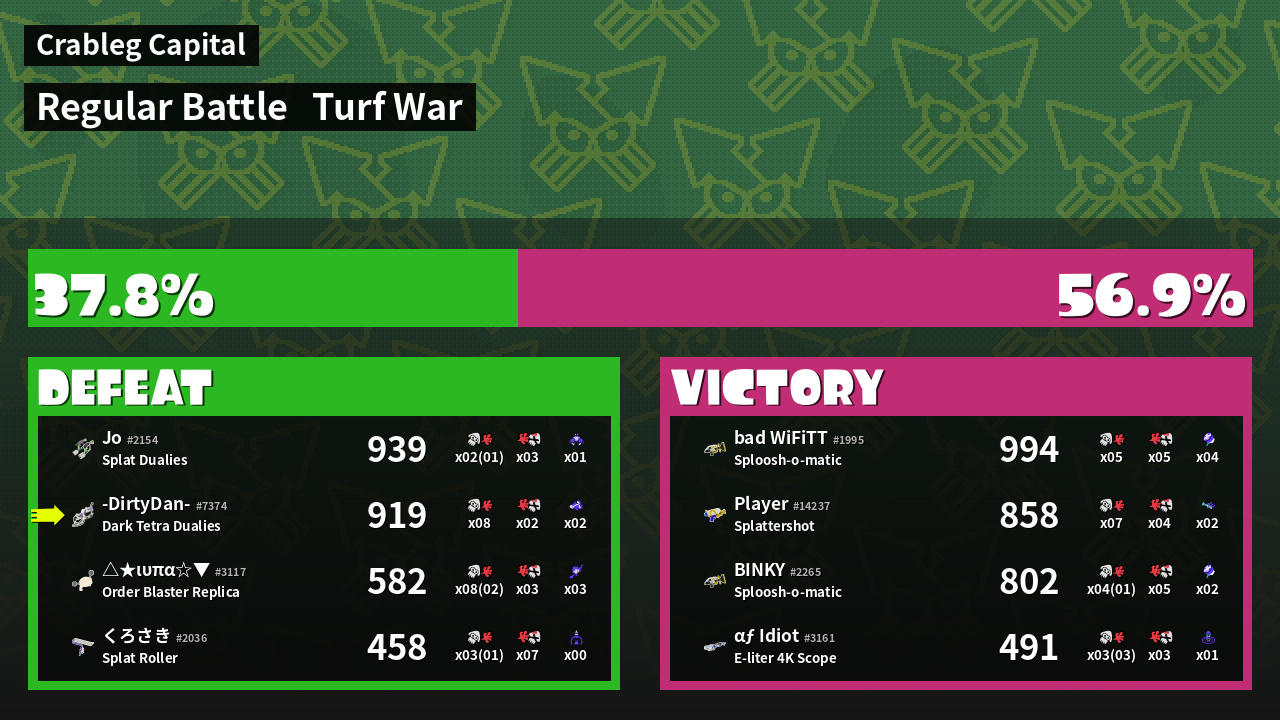100% Splattershot User -DirtyDan- #7374 |