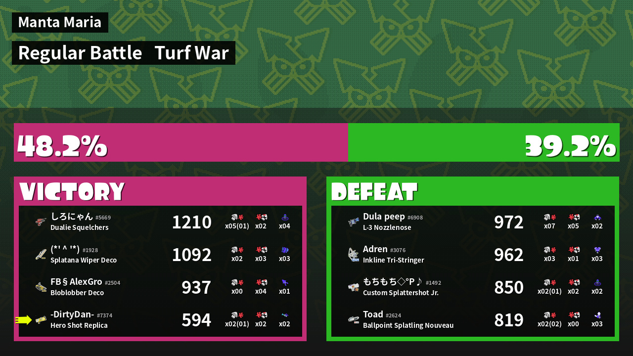 | Medals | #1 Enemy-Base Inker #1 Super Jump Spot #1 Splat Assister | ||