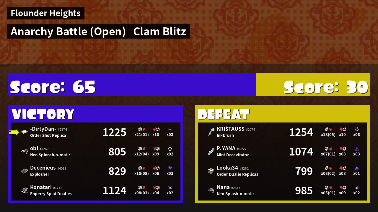 | Mode | Clam Blitz - Anarchy Battle (Open) | ||