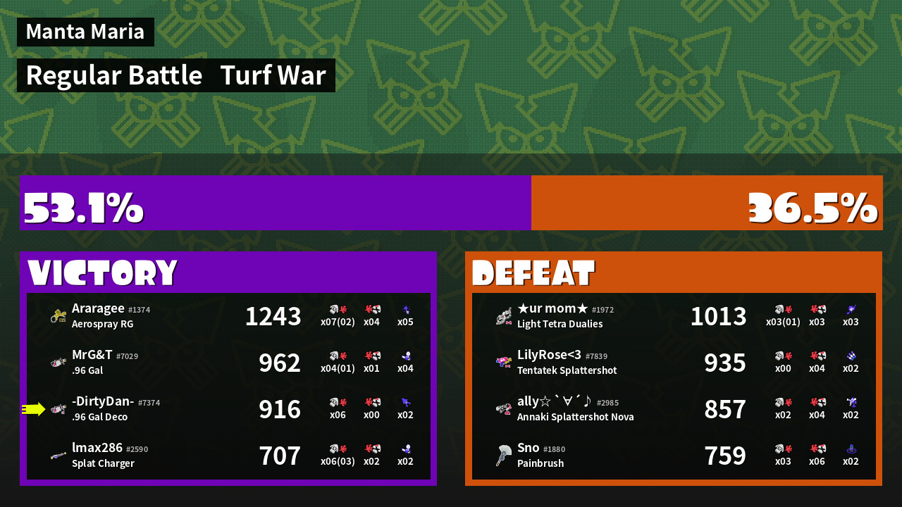 | Mode | Turf War - Regular Battle | ||
