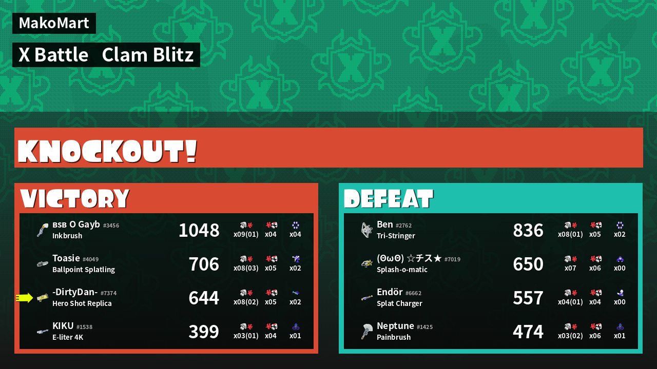 | Mode | Clam Blitz - X Battle | ||