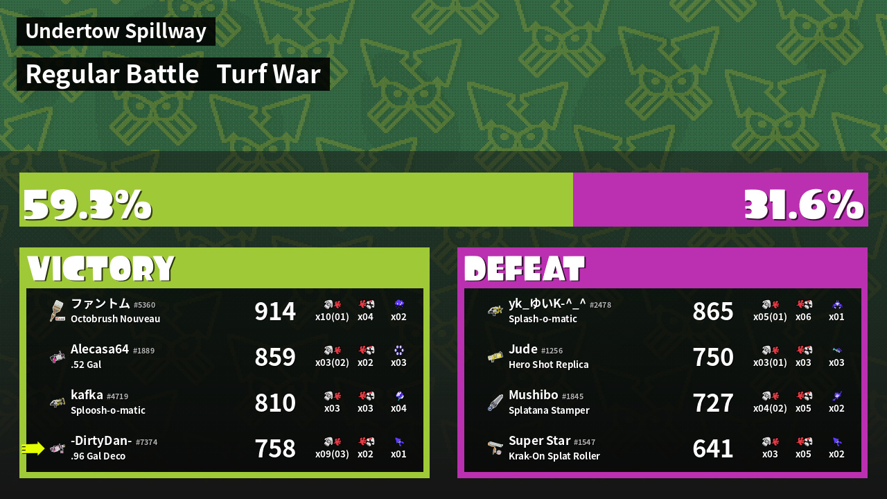 | Mode | Turf War - Regular Battle | ||