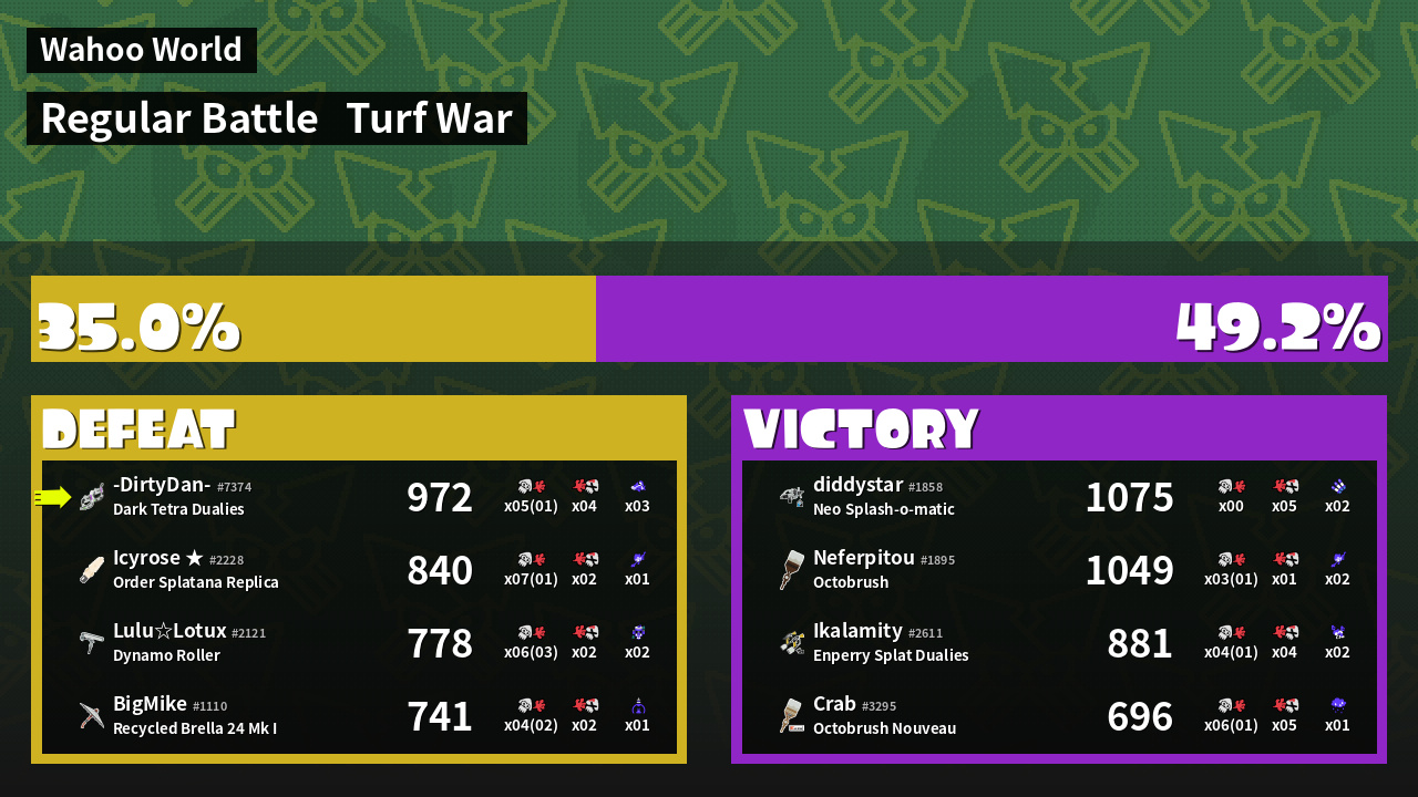 | Mode | Turf War - Regular Battle | ||