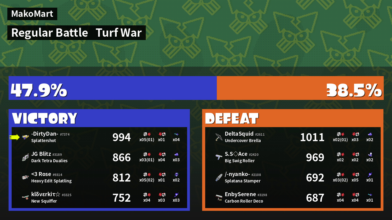 | Medals | #1 Overall Splatter #1 Turf Inker #1 Enemy-Base Inker | ||