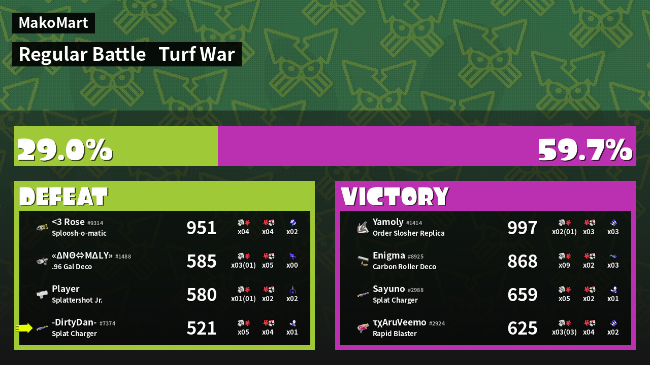 | Medals | #1 Overall Splatter #1 Enemy Splatter #1 Base Defender | ||