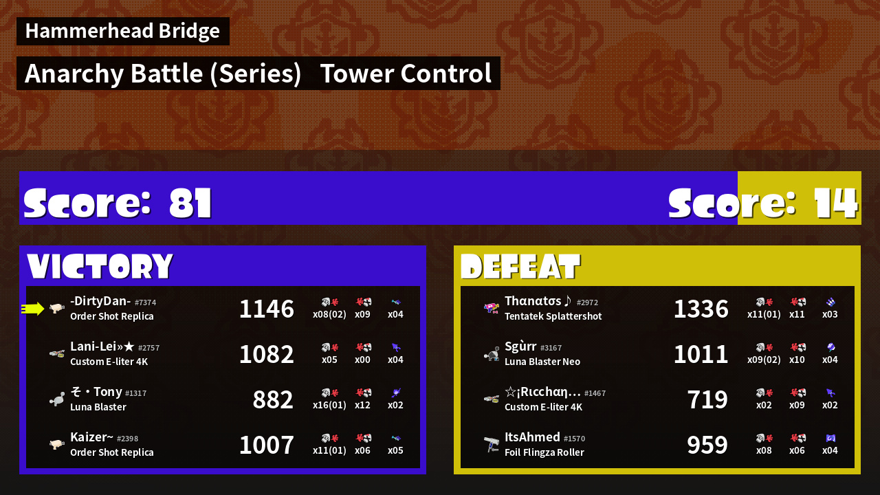 | Mode | Tower Control - Anarchy Battle (Series) | ||