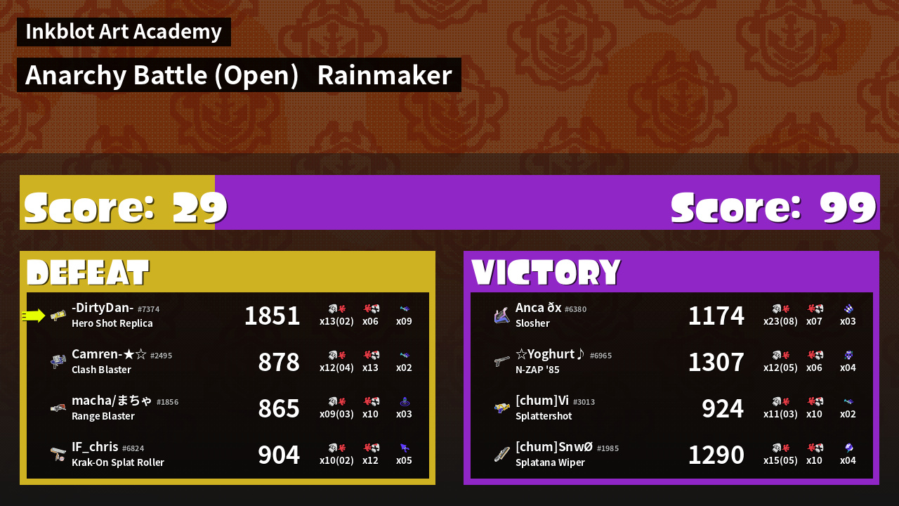 | Mode | Rainmaker - Anarchy Battle (Open) | ||