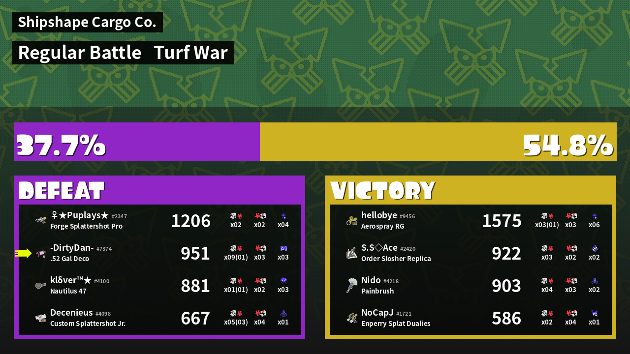 | Mode | Turf War - Regular Battle | ||