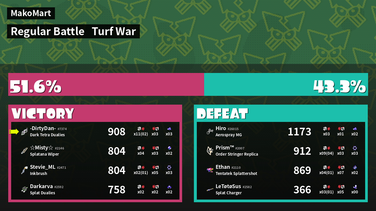| Mode | Turf War - Regular Battle | ||