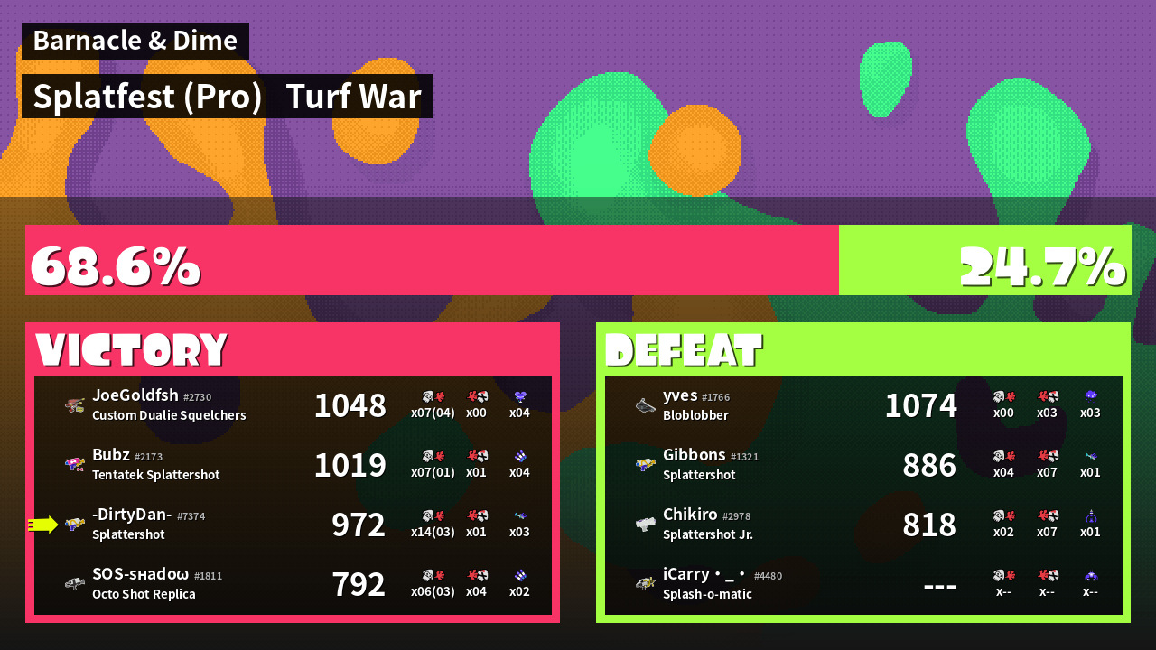 | Medals | #1 Overall Splatter #1 Popular Target #1 Enemy Splatter | ||