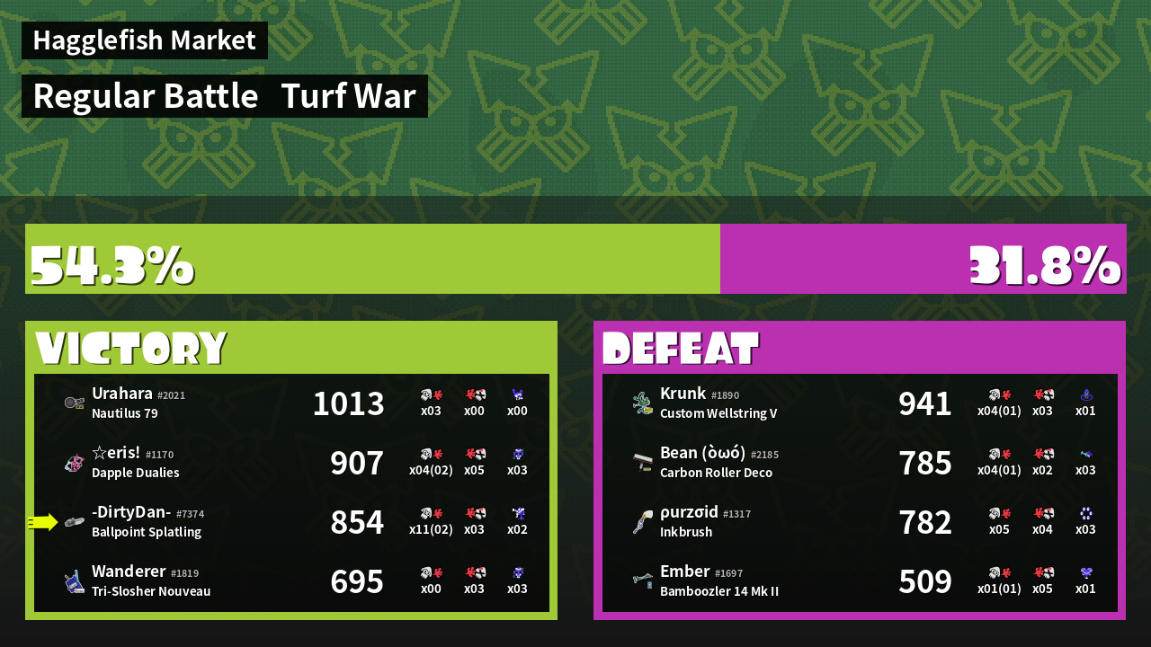 | Medals | #1 Overall Splatter #1 Popular Target #1 Enemy-Base Inker | ||