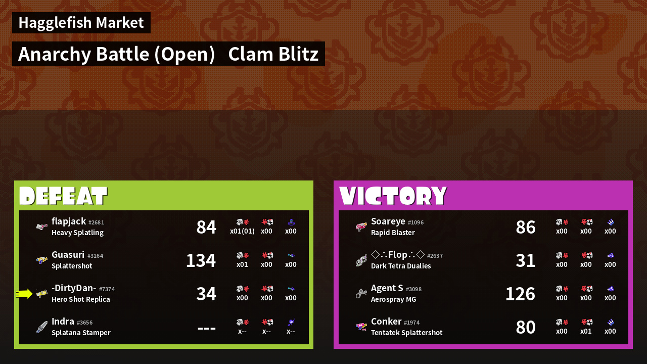 | Mode | Clam Blitz - Anarchy Battle (Open) | ||