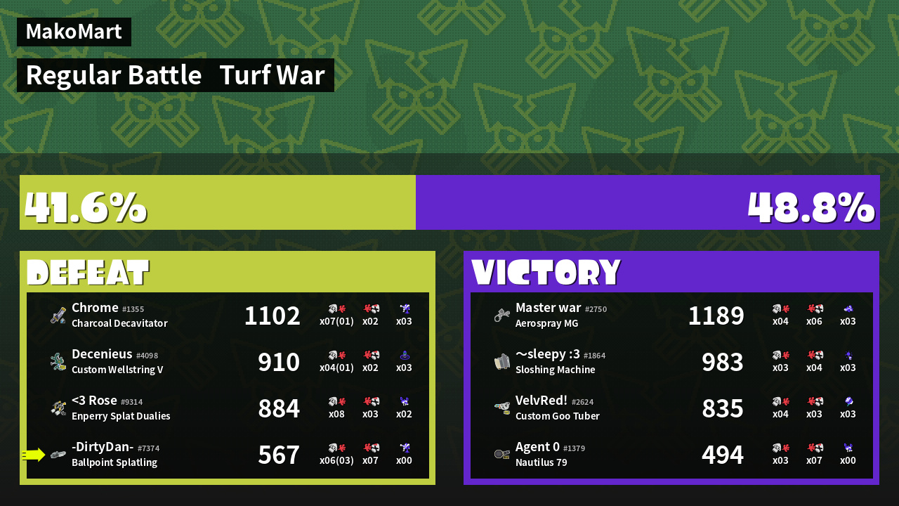 100% Splattershot User -DirtyDan- #7374 |