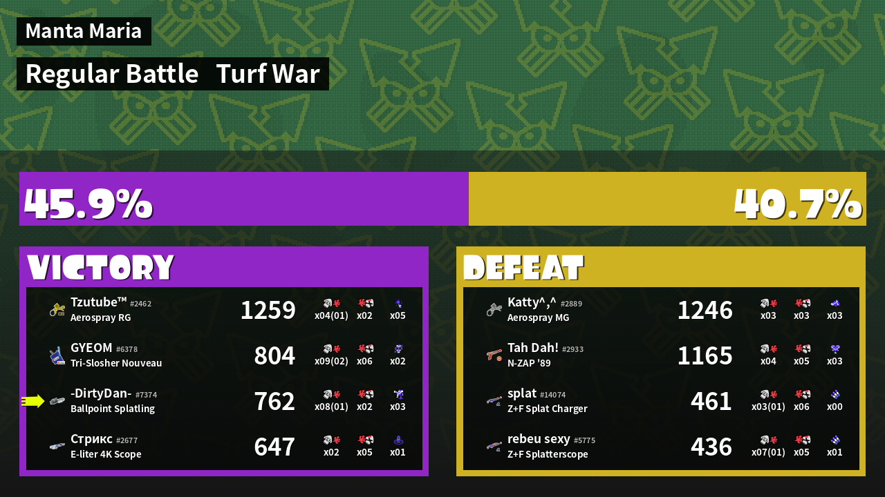 | Mode | Turf War - Regular Battle | ||