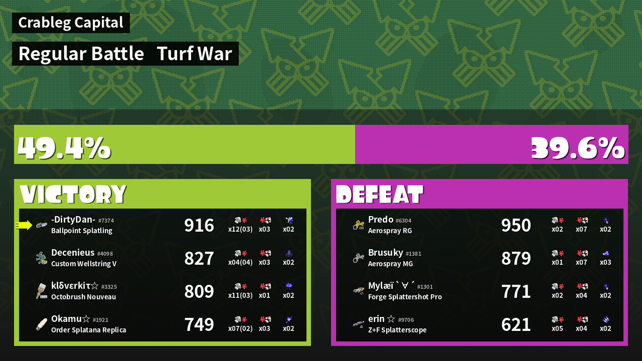 | Mode | Turf War - Regular Battle | ||
