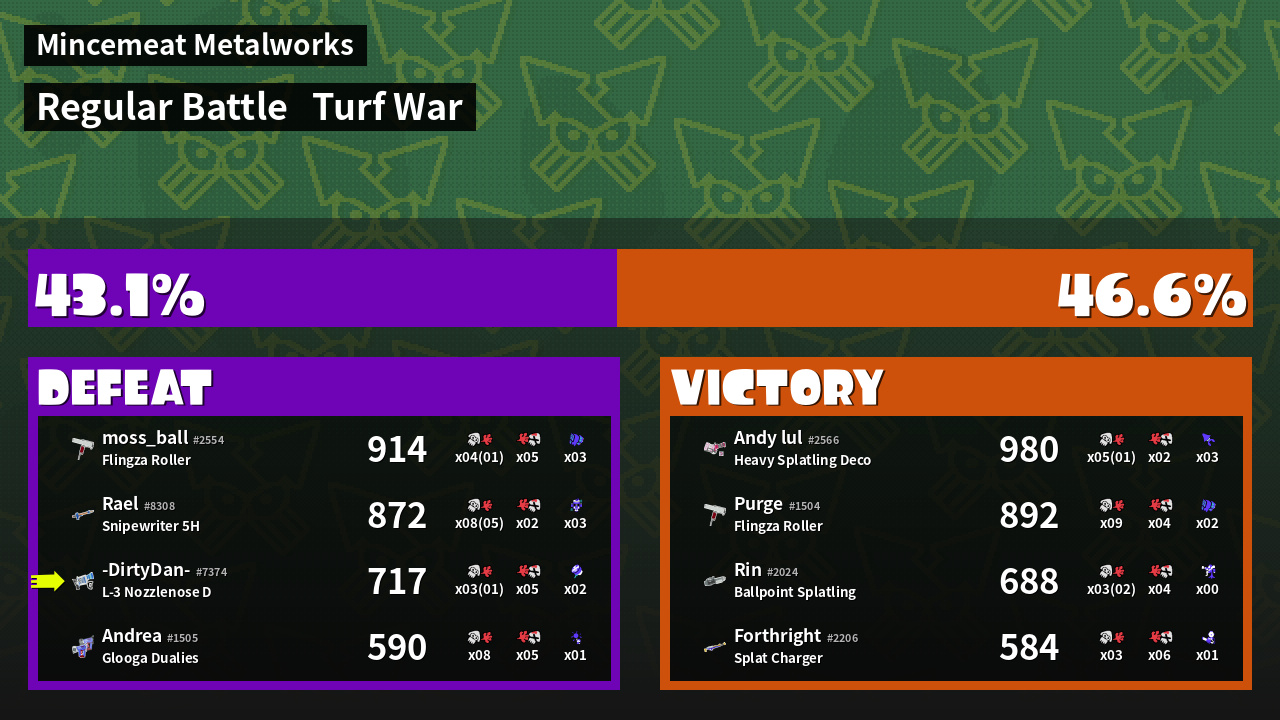 | Mode | Turf War - Regular Battle | ||