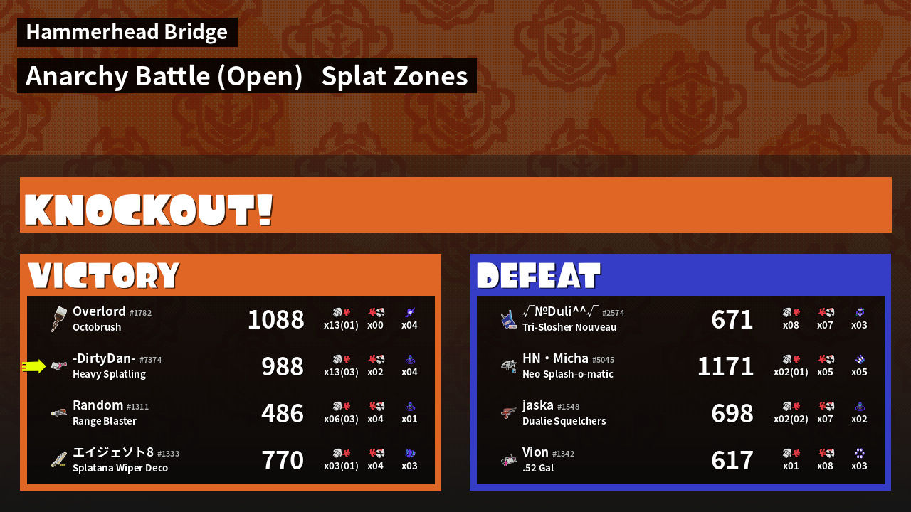 | Mode | Splat Zones - Anarchy Battle (Open) | ||
