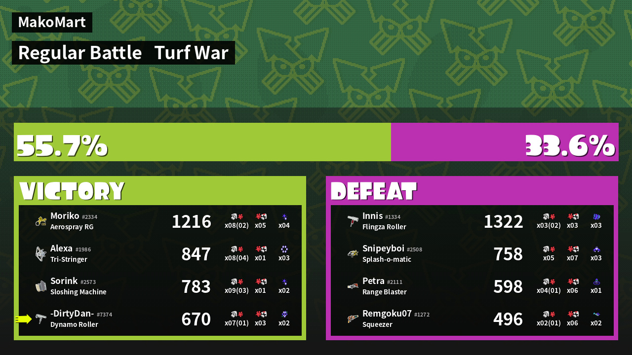 | Weapon | Dynamo Roller ( Sprinkler / Tacticooler) | ||
