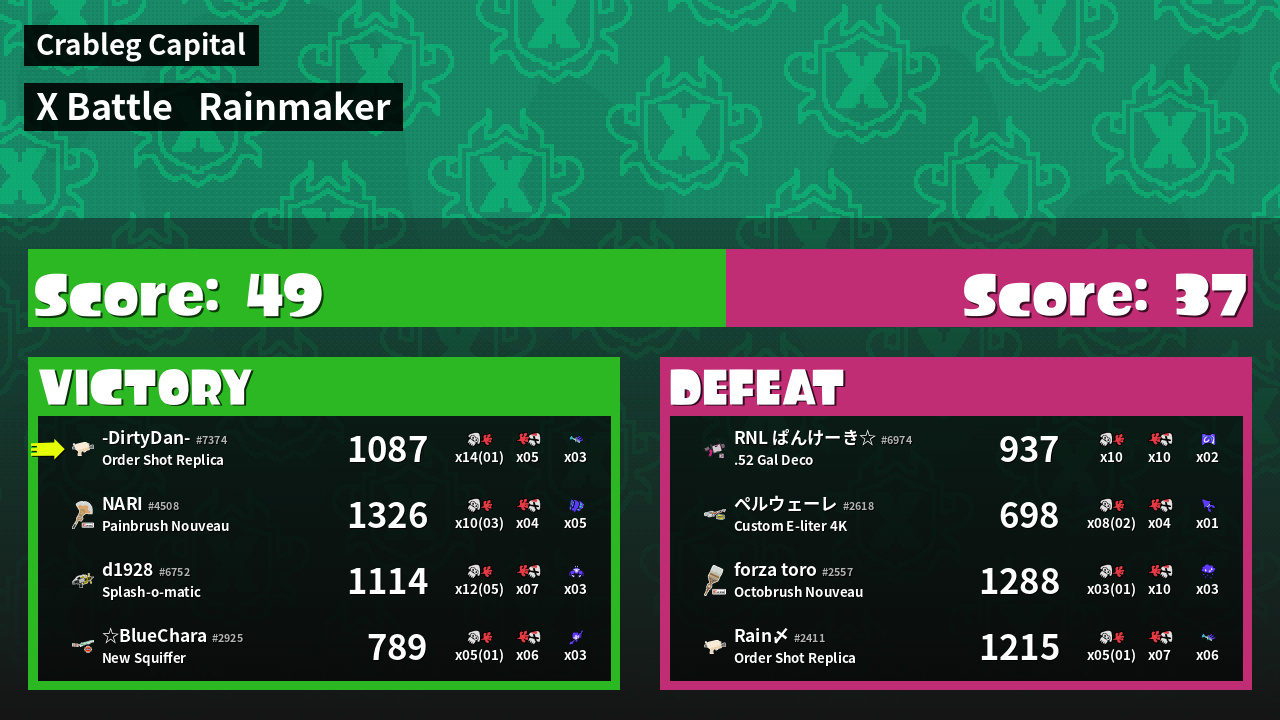 | Mode | Rainmaker - X Battle | ||