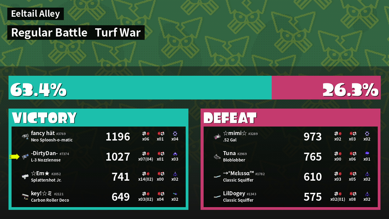 | Mode | Turf War - Regular Battle | ||