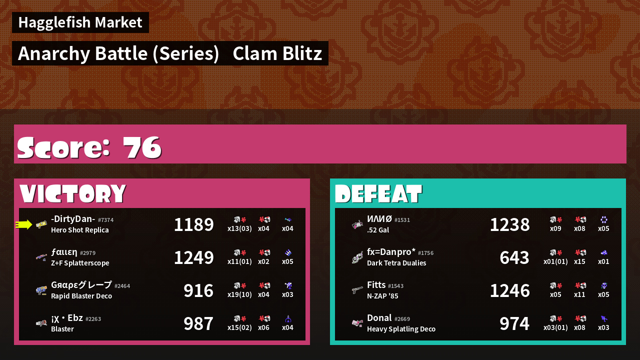 | Mode | Clam Blitz - Anarchy Battle (Series) | ||