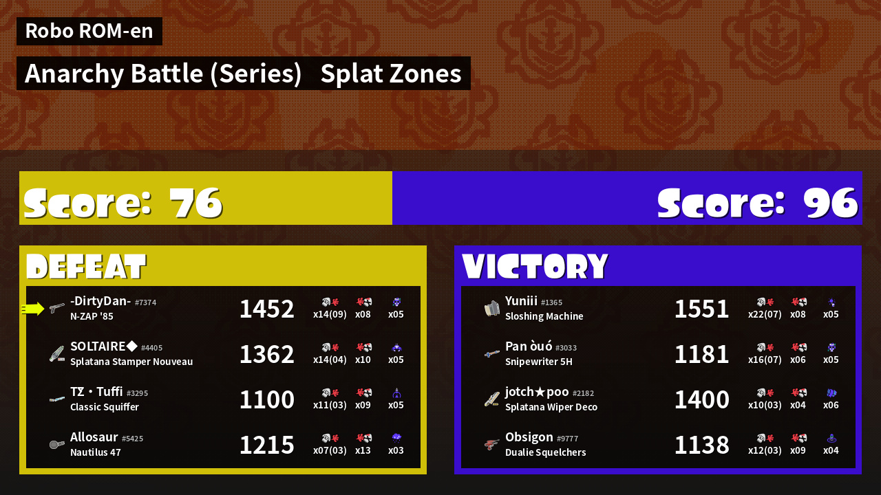 | Mode | Splat Zones - Anarchy Battle (Series) | ||