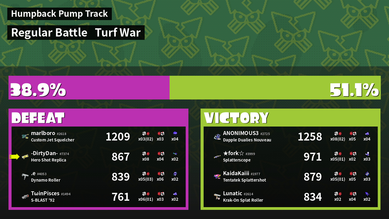 | Medals | #1 Overall Splatter #1 Popular Target #1 Enemy Splatter | ||