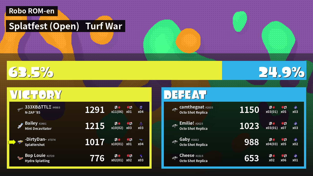 | Medals | #1 Enemy Splatter #1 Ink Consumer #1 Trizooka User | ||