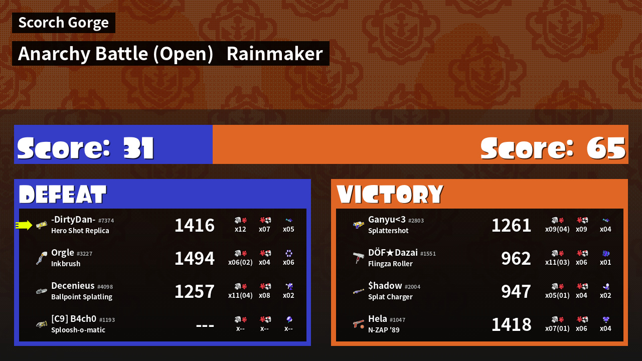 | Mode | Rainmaker - Anarchy Battle (Open) | ||