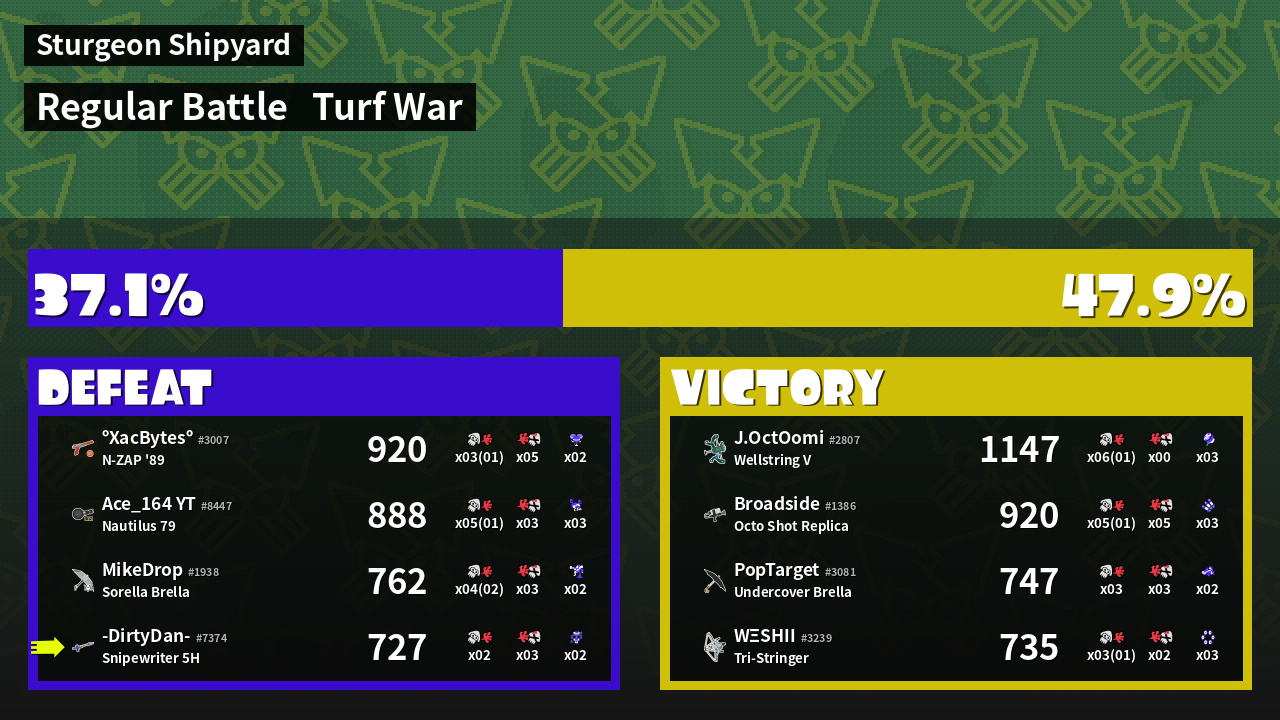 | Mode | Turf War - Regular Battle | ||