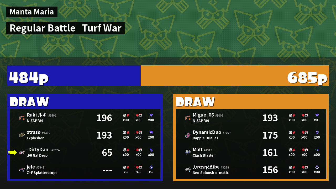 | Mode | Turf War - Regular Battle | ||